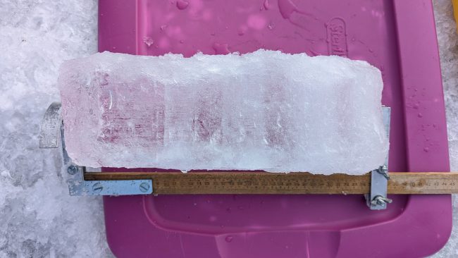 How thick is the ice? We are monitoring ice thickness trends over time. You can share measurements for ice thickness on your local lake and pond using the form below.