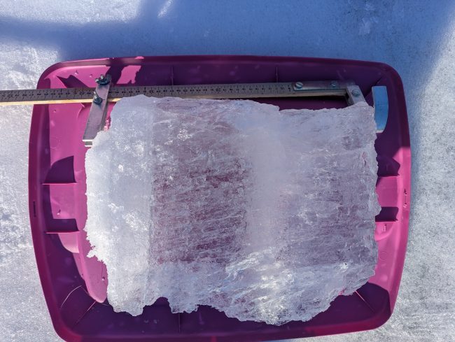 How thick is the ice? We monitor ice thickness trends over time as part of our winter water testing program. You can view recent ice thickness data from our field work here: