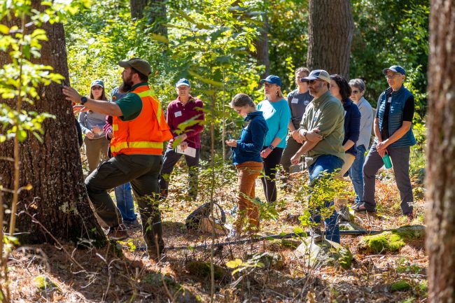 When you think of Maine, you might picture a rocky coastline or a serene lake. We don’t always connect the state with forests. However, Maine is the most forested state in the nation with a remarkable 17.8 million acres of woodland. Most of our forests are privately owned, and small woodland owners hold more than 6 million acres of forest land across the state. These forests filter clean water into our lakes, ponds, streams, and wetlands. Woodland Owner Appreciation Day, or “WOAD”, is an annual event that highlights the importance of healthy forested watersheds while connecting our local woodland owners with resources to conserve their land for years to come. This year, more than 80 landowners, partners, and resource professionals gathered at Camp Wawenock on Sebago Lake in Raymond for the annual celebration.